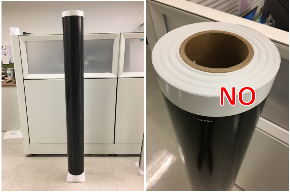 If the ink is not dry before the vinyl rolls into the printer’s take‑up system, the soft ink can stick to the backside of the vinyl, causing surface defects. -