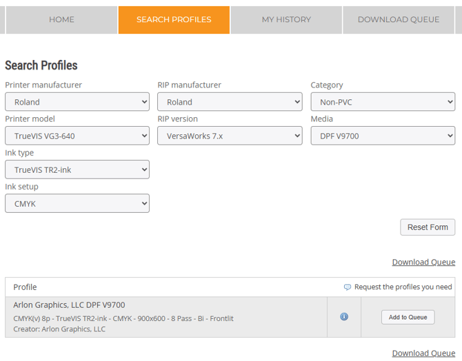 If a profile is not available, click on the "Request the profiles you need" icon. Fill out the request form.